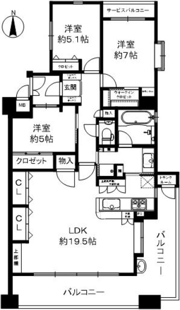 | バルコニー面積 | 24.63m² | バルコニー方向 | 南東 | ||
